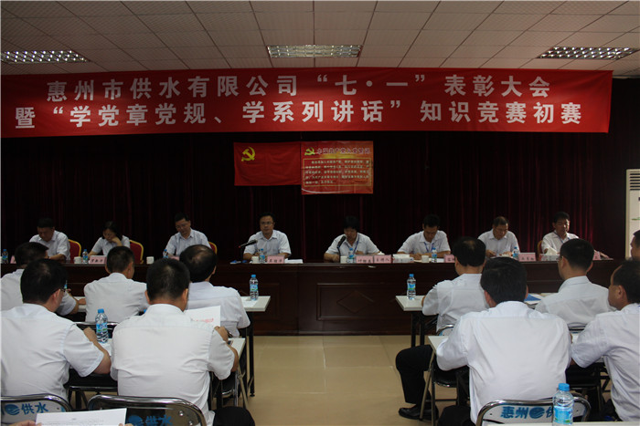 7月1日,市供水公司召開“七一”表彰大會(huì)暨“學(xué)黨章黨規(guī)、學(xué)系列講話”知識(shí)競(jìng)賽初賽,以新黨員入黨宣誓及老黨員重溫誓詞、表彰先進(jìn)、開展“兩學(xué)一做”專題黨課和知識(shí)競(jìng)賽的方式,隆重慶祝中國(guó)共產(chǎn)黨誕辰95周年。