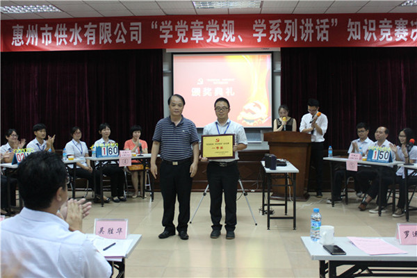 此前,17支參賽隊(duì)以筆試形式參加了“學(xué)黨章黨規(guī),學(xué)系列講話”知識(shí)競(jìng)賽初賽,最終遴選出行政三黨支部、營(yíng)業(yè)分公司和潼湖水廠等8支黨支部代表隊(duì)參與決賽。