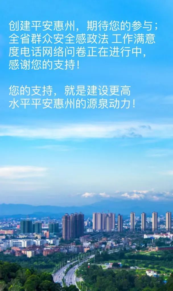 平安惠州 | 全省群眾安全感政法工作滿意度調(diào)查正在進(jìn)行中,感謝您的支持!