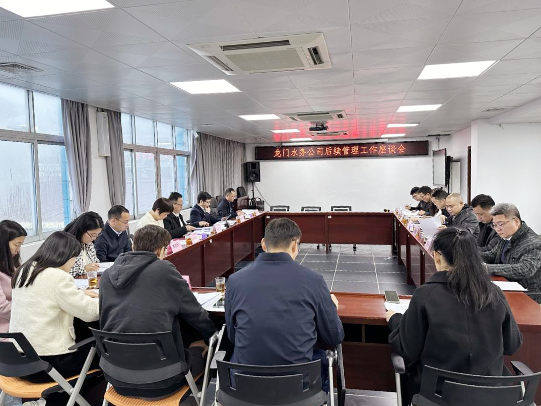 調(diào)研組一行首先到龍門縣城水廠召開了工作座談會。會上,龍門水務(wù)公司董事長曾繁昌詳細匯報了相關(guān)情況,包括接管后需協(xié)調(diào)事項的進展情況、龍門水務(wù)公司機構(gòu)精簡方案、現(xiàn)有項目建設(shè)推進情況以及企業(yè)降本控費提質(zhì)增效工作舉措。吳勝華對龍門水務(wù)公司在劃轉(zhuǎn)后與集團統(tǒng)一思想、統(tǒng)一意志、統(tǒng)一行動表示肯定。吳勝華指出,龍門水務(wù)公司要按照市國資委、集團管理規(guī)章制度,加快完善組織架構(gòu)設(shè)置以及基本管理制度的制定修訂工作,重點抓好領(lǐng)導班子分工調(diào)整、協(xié)調(diào)事項跟進、全面預算管理、項目合規(guī)管理、二次供水市場拓展等工作。