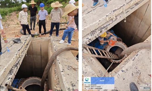 此次施工涉及DN2000鋼管切割、排水及新舊管接通,作業(yè)影響范圍廣、技術(shù)難度大、井下作業(yè)風險高。為保障施工安全、減少停水影響,原水公司提前24小時精準發(fā)布停水通知,提醒沿線用戶提前儲水,并同步啟動應(yīng)急保障預(yù)案,科學調(diào)度管網(wǎng)水量。施工期間,原水公司安排專人在鯉魚嶺泵站、稔山施工點及黃坑泵站全程值守,調(diào)度中心實時監(jiān)測調(diào)壓塔水位,應(yīng)急小組現(xiàn)場待命,水質(zhì)檢測同步跟進,全方位筑牢安全防線。