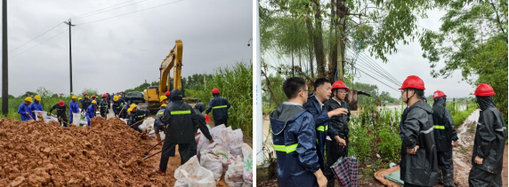 在惠陽區(qū)淡水河堤,經(jīng)過多輪強(qiáng)降水,惠陽區(qū)淡水河水位快速上漲并持續(xù)超警戒水位,部分堤段出現(xiàn)漫堤險(xiǎn)情。8月5日11時(shí),水電公司接到前往現(xiàn)場執(zhí)行搶險(xiǎn)物資運(yùn)輸任務(wù),隨即調(diào)度5輛運(yùn)輸車、1臺隨車吊機(jī)、1臺叉車,50名工人和20名技術(shù)管理人員趕往運(yùn)輸點(diǎn),水電公司副總經(jīng)理、教授級高級工程師張建平帶隊(duì)來到現(xiàn)場,共同研討搶險(xiǎn)方案,為搶險(xiǎn)工作提供技術(shù)指導(dǎo)。從接到指令到第一、第二輛運(yùn)輸車出發(fā),僅用時(shí)1個(gè)多小時(shí),至14時(shí)41分,全部機(jī)械設(shè)備準(zhǔn)備完畢前往搶險(xiǎn)現(xiàn)場。面對時(shí)間緊、任務(wù)重的挑戰(zhàn),搶險(xiǎn)隊(duì)員頂風(fēng)冒雨,連續(xù)作戰(zhàn),18時(shí)57分,淡水河段下游搶險(xiǎn)點(diǎn)已完成合攏,險(xiǎn)情得到有效控制,為后續(xù)防汛工作贏得了寶貴時(shí)間。