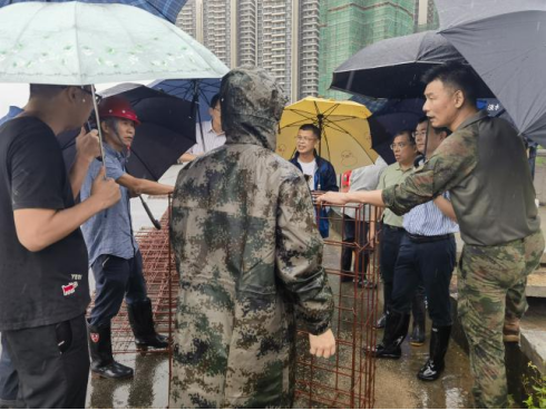 在潼湖崗頭新圍,8月5日早上,水電公司接到赴潼湖崗頭新圍搶險(xiǎn)命令,搶險(xiǎn)隊(duì)70人立即集結(jié)待命,完成應(yīng)急搶險(xiǎn)安全技術(shù)交底工作后乘車前往仲愷高新區(qū)潼湖崗頭新圍開展子堤加高加固搶險(xiǎn)。水電公司總工程師謝武帶隊(duì)趕赴險(xiǎn)情現(xiàn)場勘查,研討搶險(xiǎn)方案,指導(dǎo)搶險(xiǎn)工作。12時(shí)30分,搶險(xiǎn)人員、機(jī)械設(shè)備和搶險(xiǎn)物資已到達(dá)現(xiàn)場第一作業(yè)點(diǎn)開展搶險(xiǎn)。因連日降雨,現(xiàn)場河水水位高漲幾近漫堤,險(xiǎn)情非常緊急。搶險(xiǎn)隊(duì)員或鏟裝沙袋、或搬運(yùn)堆砌、或機(jī)械清障,大家分工協(xié)作,有條不紊開展子堤加高。經(jīng)過全員不懈努力,僅用4個(gè)小時(shí),第一搶險(xiǎn)點(diǎn)子堤加高加固就已完成,順利完成搶險(xiǎn)任務(wù)。