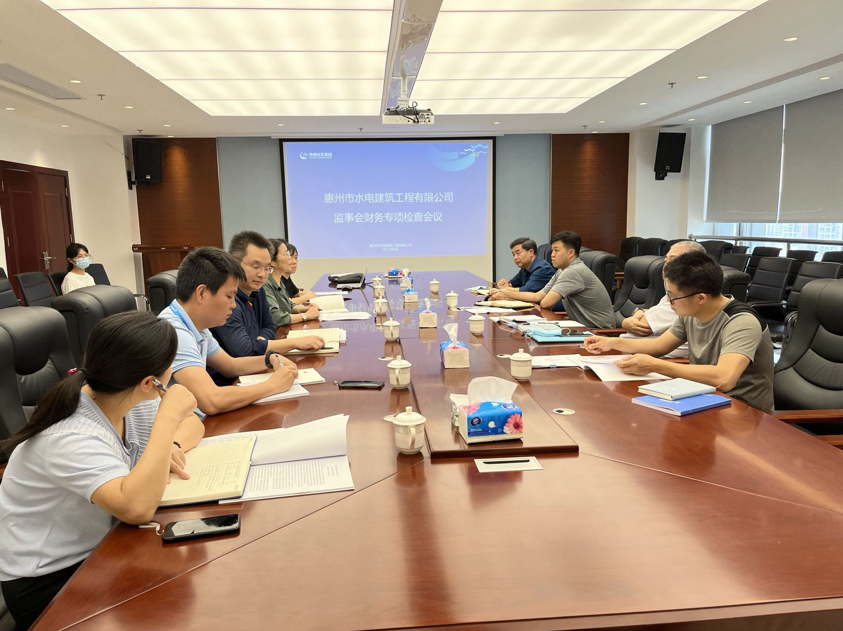 4月24日下午,惠州市水電建筑工程有限公司第三屆監(jiān)事會第三次會議暨財務(wù)專項檢查會議在水務(wù)調(diào)度中心1419室召開。會議由監(jiān)事會主席吳文輝主持,集團(tuán)委派監(jiān)事,職工監(jiān)事,監(jiān)事會辦公室、財務(wù)部相關(guān)負(fù)責(zé)人,會計師事務(wù)所相關(guān)人員共12人參加了會議。