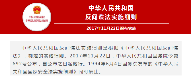 第一條?根據(jù)《中華人民共和國(guó)反間諜法》(以下簡(jiǎn)稱《反間諜法》),制定本實(shí)施細(xì)則。