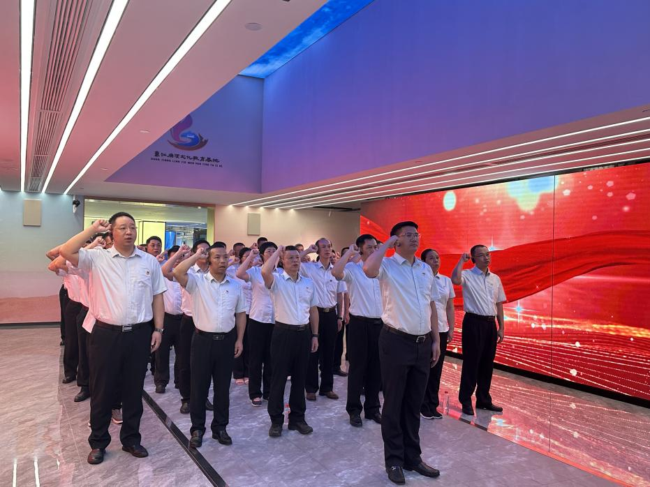 清廉是堅守,是信仰,更是初心,在“廉潔之道”展廳,面對鮮紅的黨旗,黨員干部們高舉右拳重溫入黨誓詞“我志愿加入中國共產(chǎn)黨,擁護(hù)黨的綱領(lǐng)……”,用鏗鏘有力的聲音表達(dá)著堅定的理想信念。