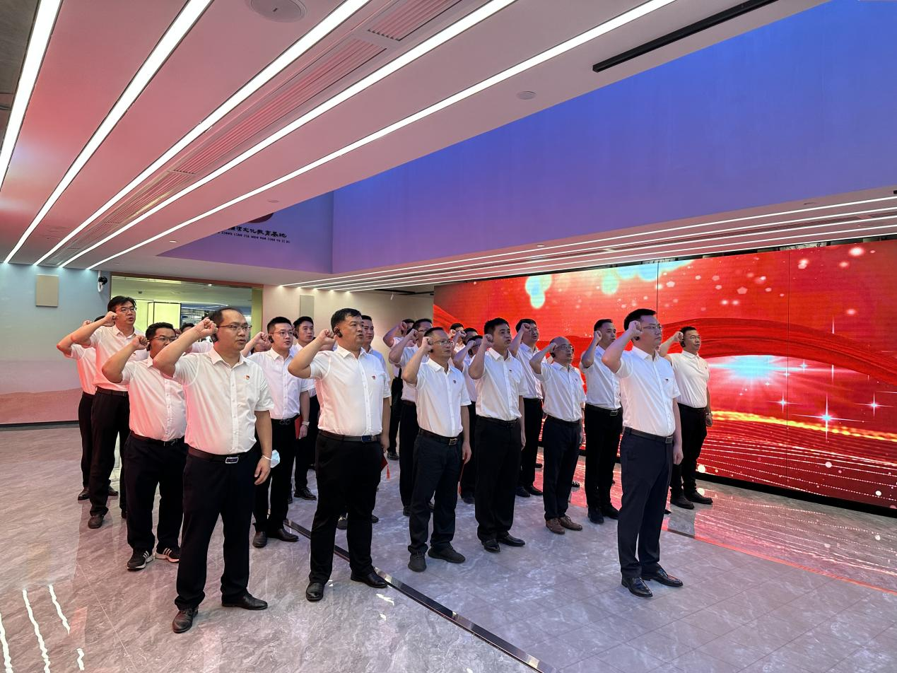 “我志愿加入中國共產(chǎn)黨,擁護(hù)黨的綱領(lǐng),遵守黨的章程……”在綠水公司黨支部書記董飛的帶領(lǐng)下,大家莊嚴(yán)地重溫了入黨誓詞,重憶入黨初心,加強(qiáng)自我約束。