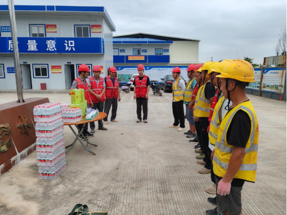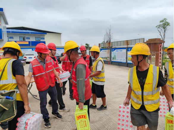 為切實(shí)做好防暑降溫工作,保障一線建設(shè)者的健康安全,5月28日上午,由市水電公司承建的宏達(dá)路(惠大高速至一號(hào)公路段)工程(一期)臨時(shí)黨支部聯(lián)合項(xiàng)目部,在施工現(xiàn)場(chǎng)開展“夏日送清涼”慰問活動(dòng),為奮戰(zhàn)在高溫下的工人們送去黨組織的關(guān)懷與夏日的清涼。