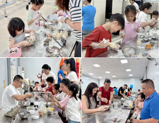 活動現(xiàn)場,22組家庭化身為“美食工匠”,開啟了冰皮月餅DIY之旅,從揉面、包餡到壓模,親子間的默契協(xié)作下,一枚枚印有“平山自來水廠”“城南水塔”“水泥船泵房”等公司發(fā)展史上標(biāo)志性建筑物圖案的月餅在掌心悄然成型。在活動的另一側(cè),二十余盞創(chuàng)意燈籠正悄然點(diǎn)亮,職工家庭以公司發(fā)展歷程為靈感,利用材料包中的竹篾、彩筆等素材,設(shè)計(jì)出“惠東供水60周年”“中秋快樂”等特色燈籠,將對企業(yè)發(fā)展的美好祝福融入其中。最終,所有家庭自制的月餅和燈籠作為活動紀(jì)念品被帶回家中,更成為傳遞企業(yè)溫情的獨(dú)特載體。